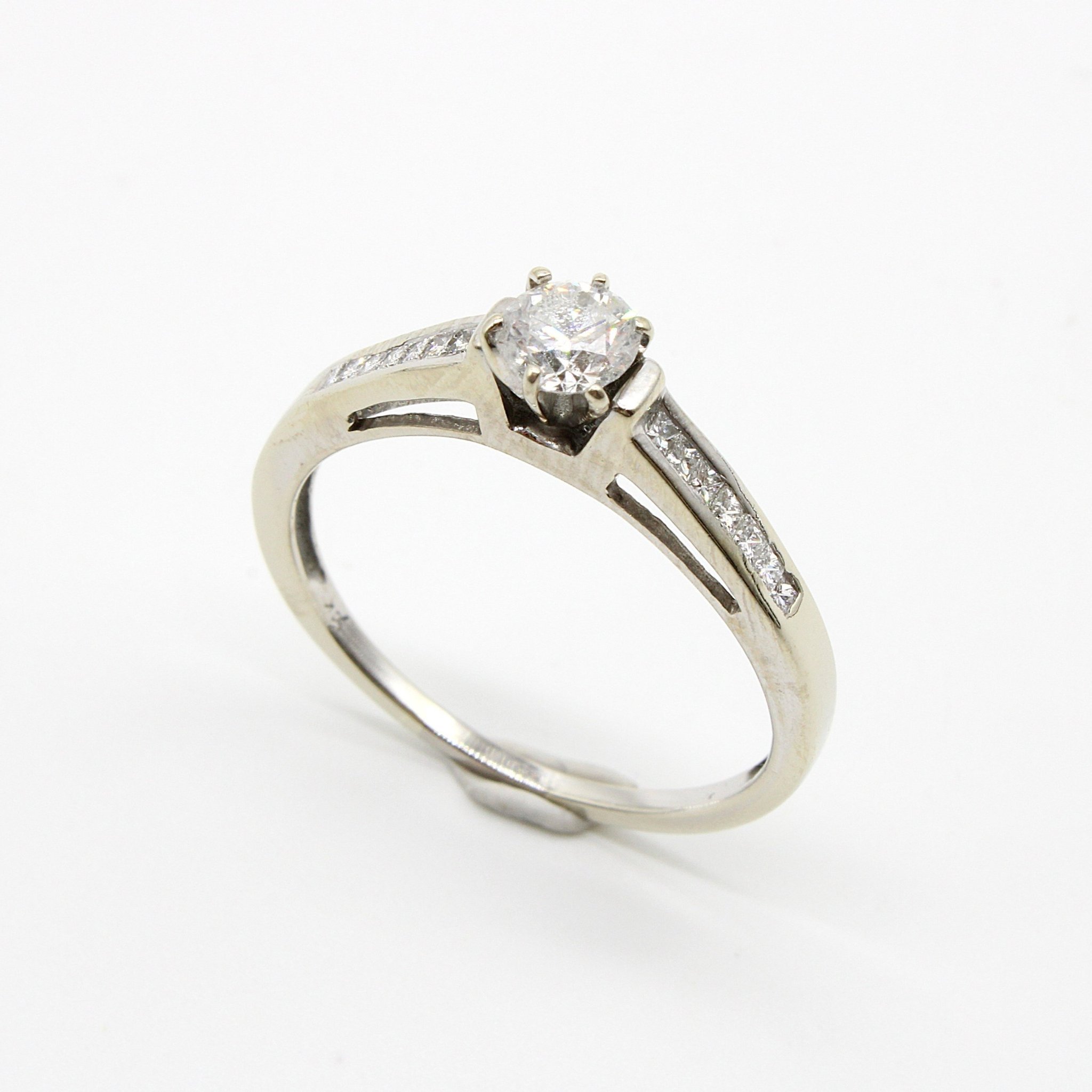 Solitär-/sidostensring i 14K vitguld med äkta diamanter (0,75ctv, stl 18,1mm)
