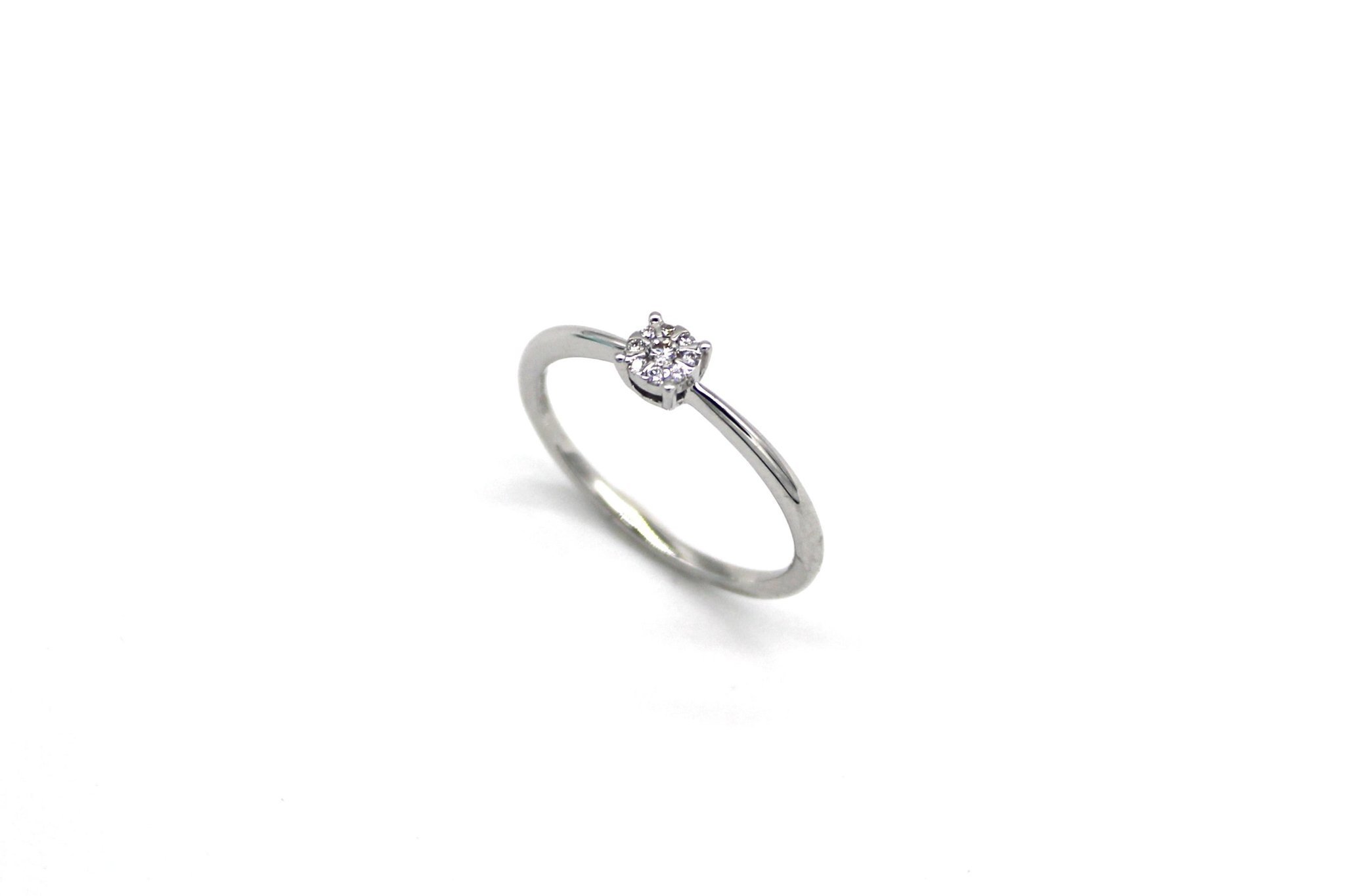 Elegant solitär-/sidostensring i 18K vitguld med äkta diamanter (1ctv, stl 16mm)