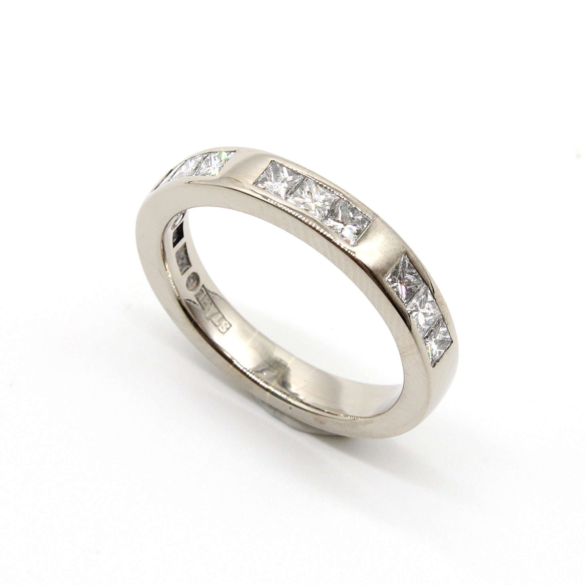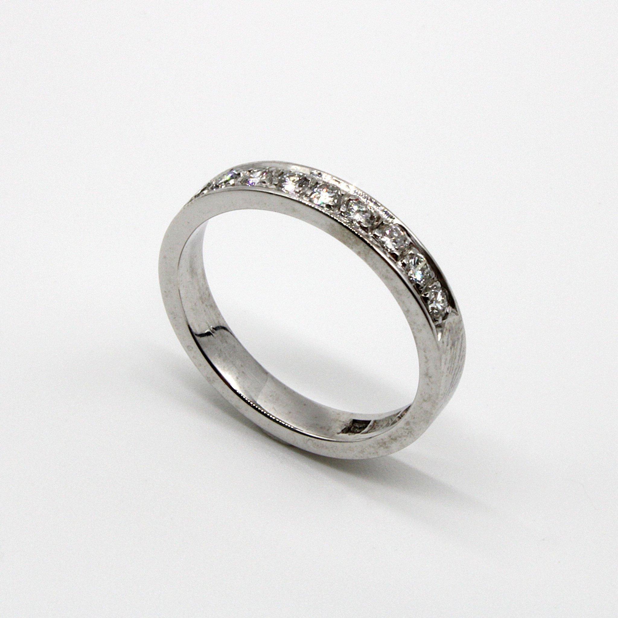Klassisk halvalliansring i 18K vitguld med äkta diamanter (0,19ctv, stl 16,8mm)