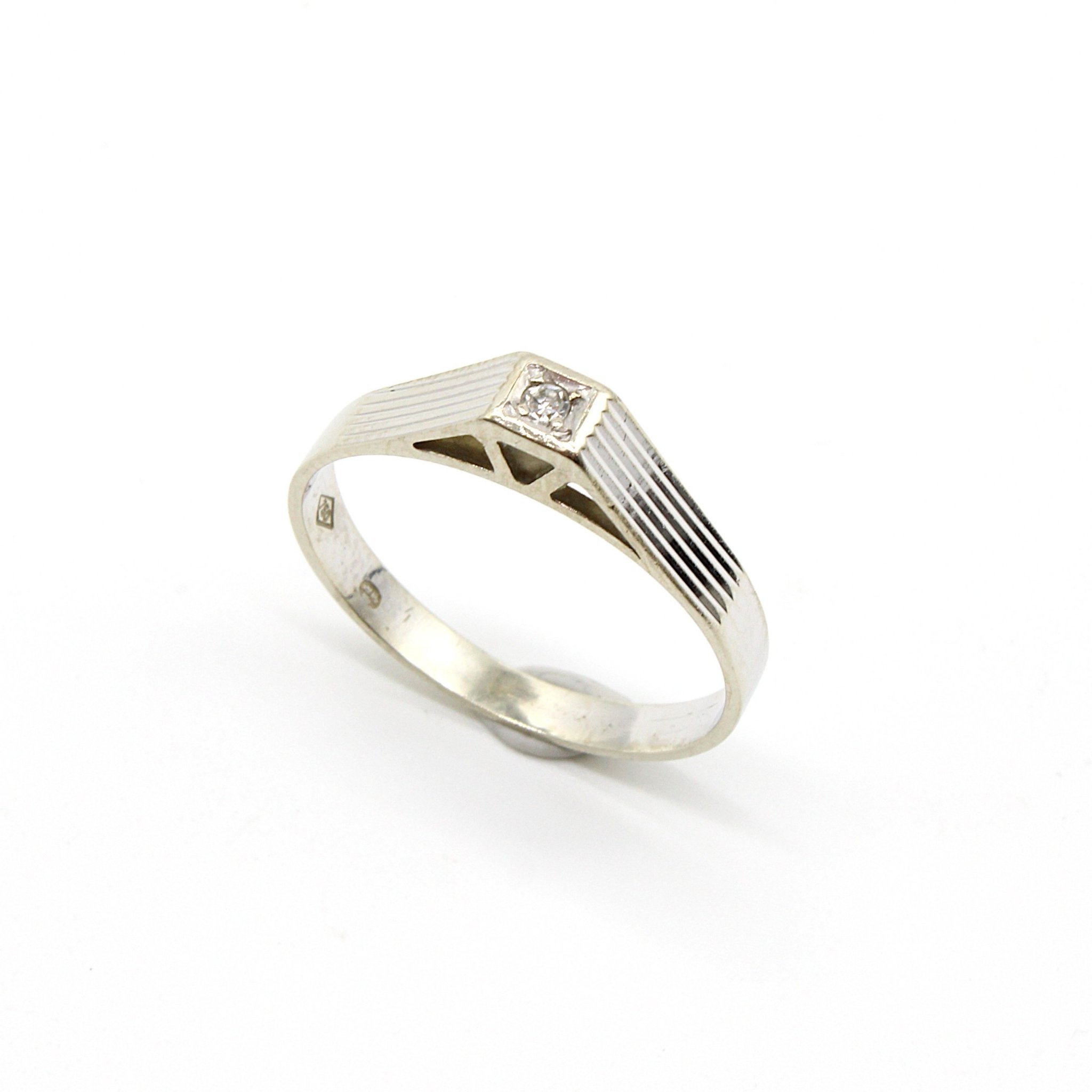 Elegant solitär-/sidostensring i 18K vitguld med äkta diamanter (1ctv, stl 16mm)