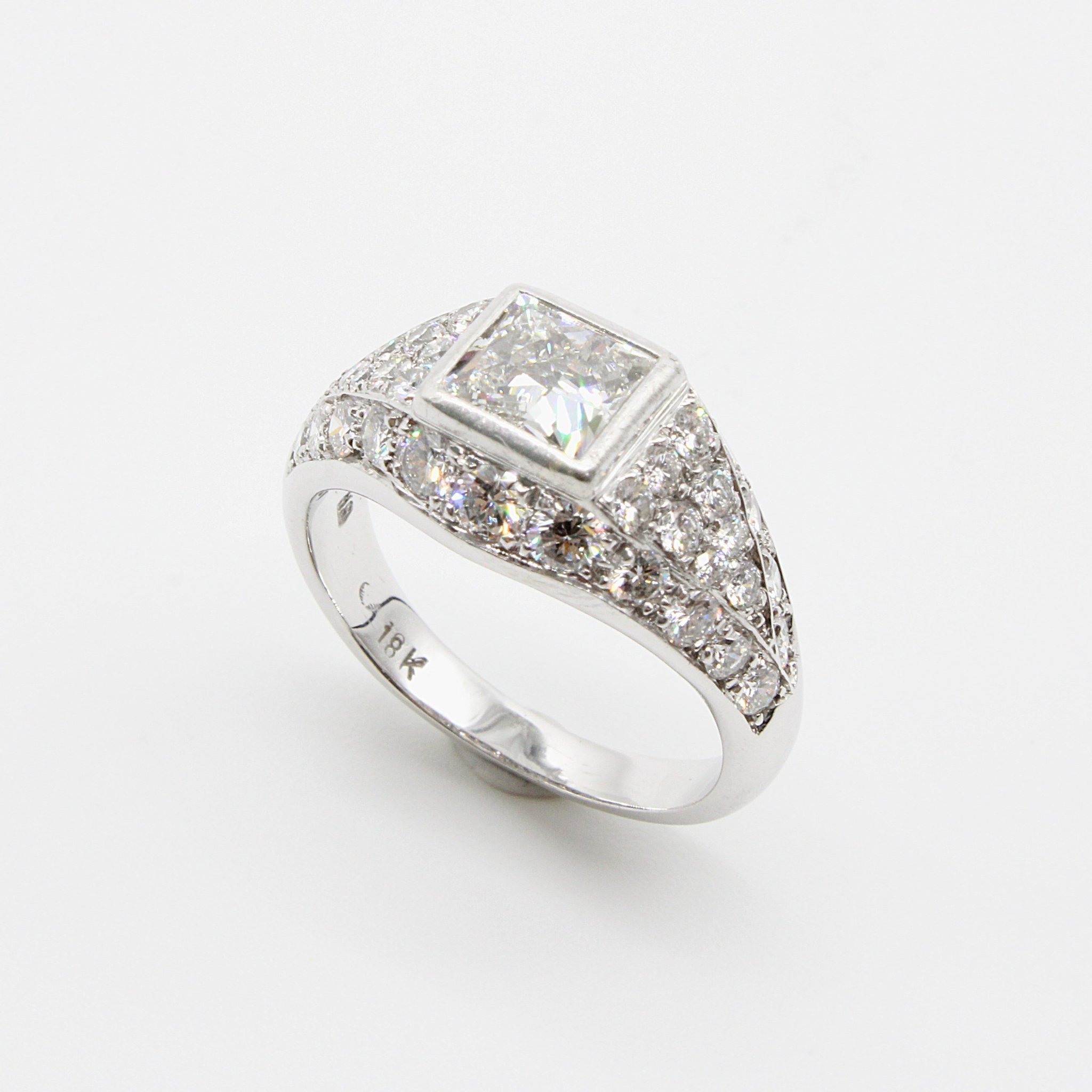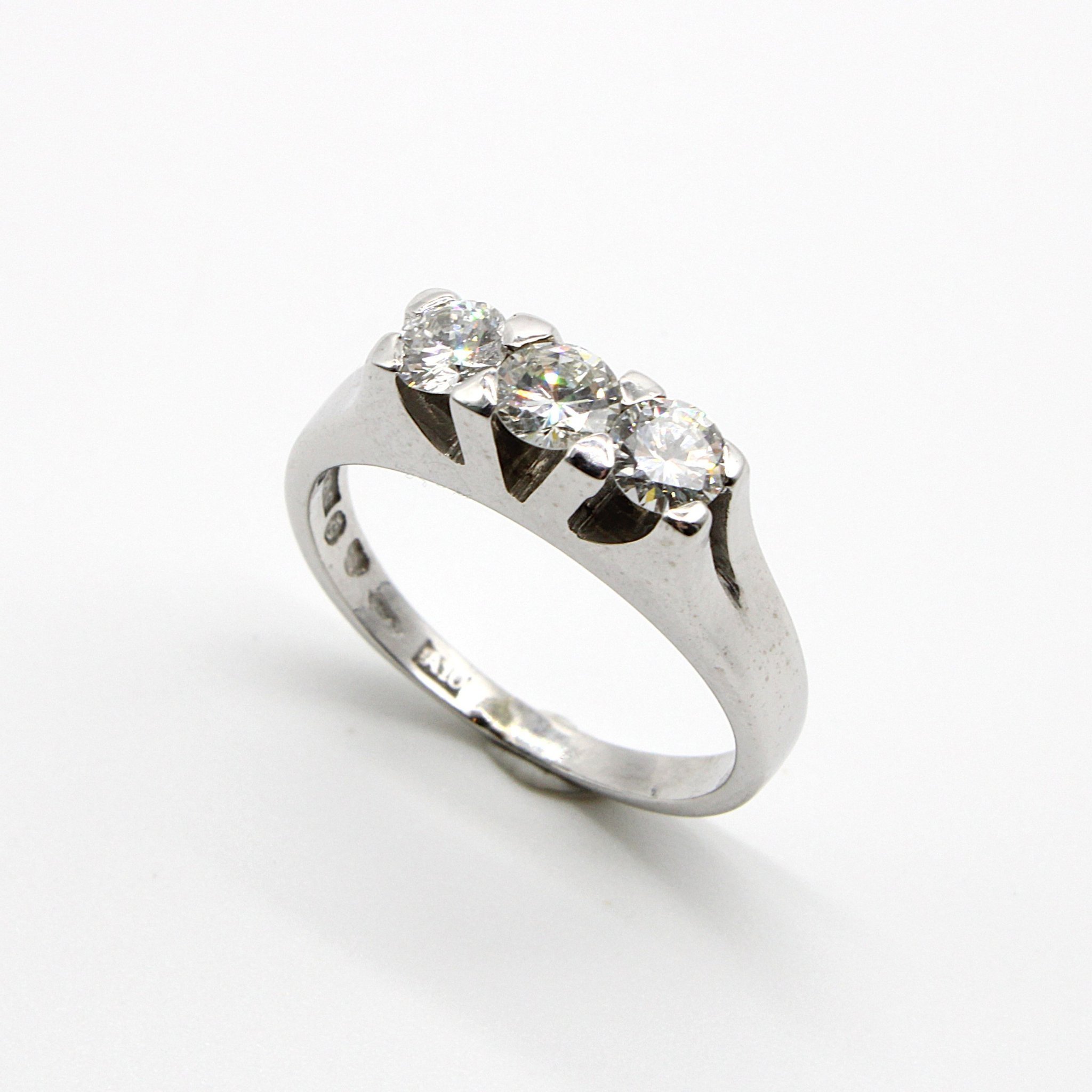 Vacker solitär-/sidostensring i 18K vitguld med diamanter (2,1ctv, stl 15,35mm)