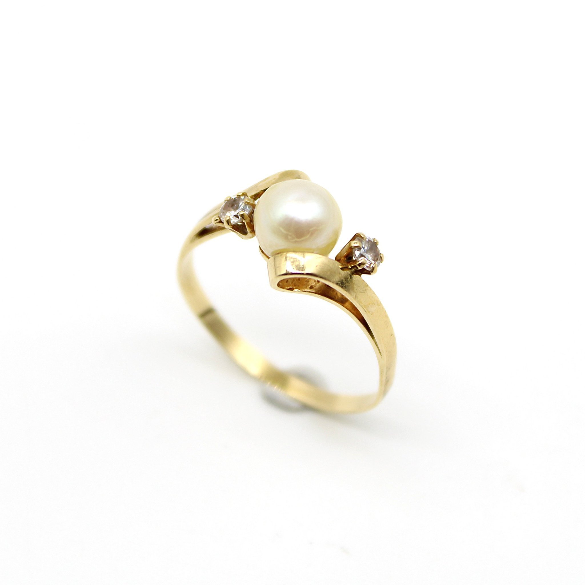 Statement ring i 18K guld med äkta diamanter och pärlor (0,6ctv, stl 16,75mm)