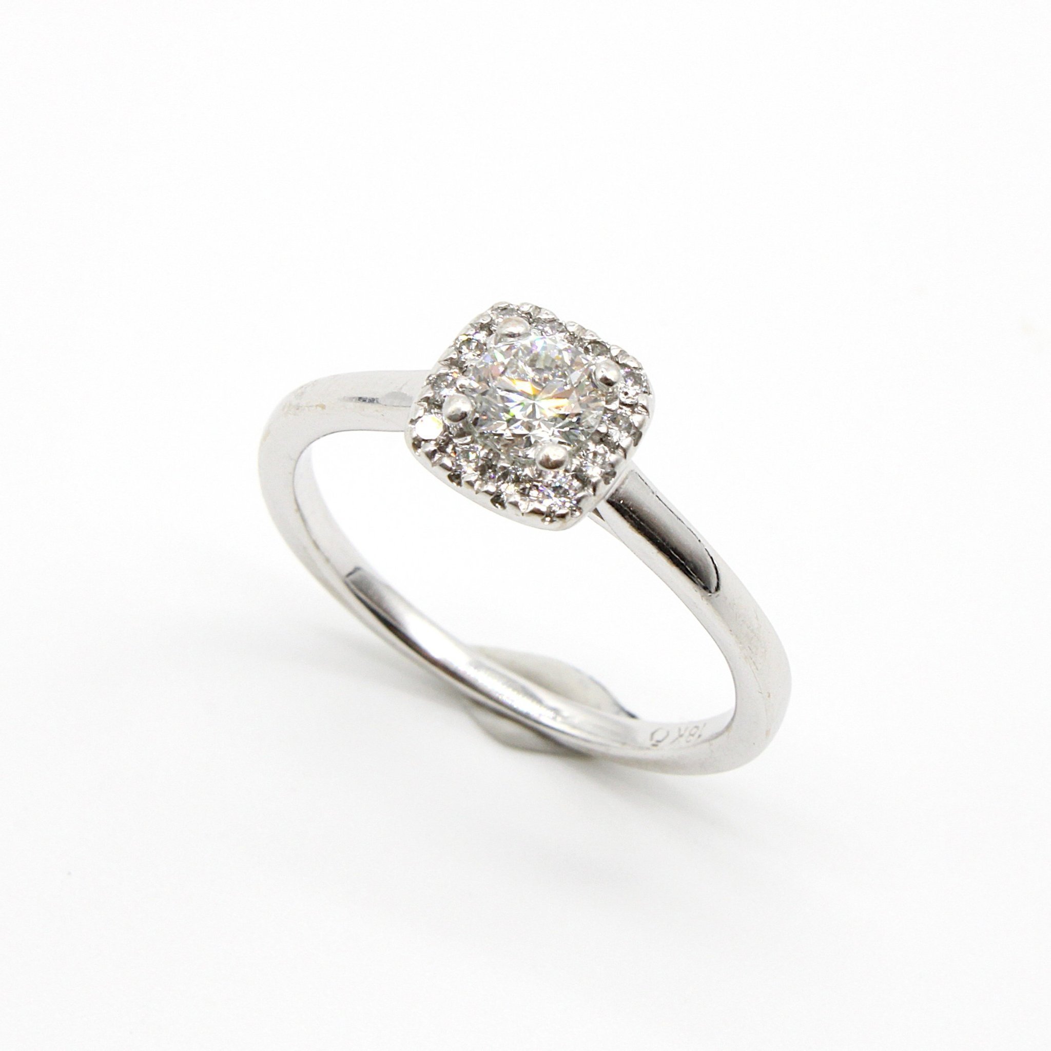 Solitär-/sidostensring i 18K vitguld med äkta diamanter (0,58ctv, stl 15,55mm)