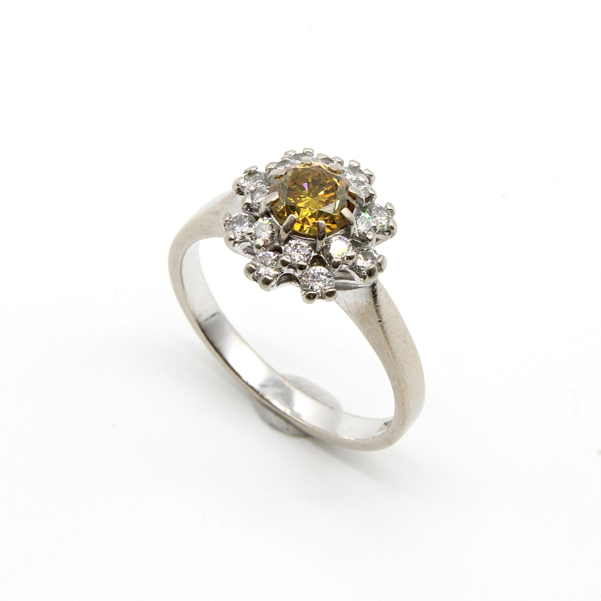 Carmoséring i 18K vitguld med vita diamanter och en fancy-brun diamant (1,02ctv)