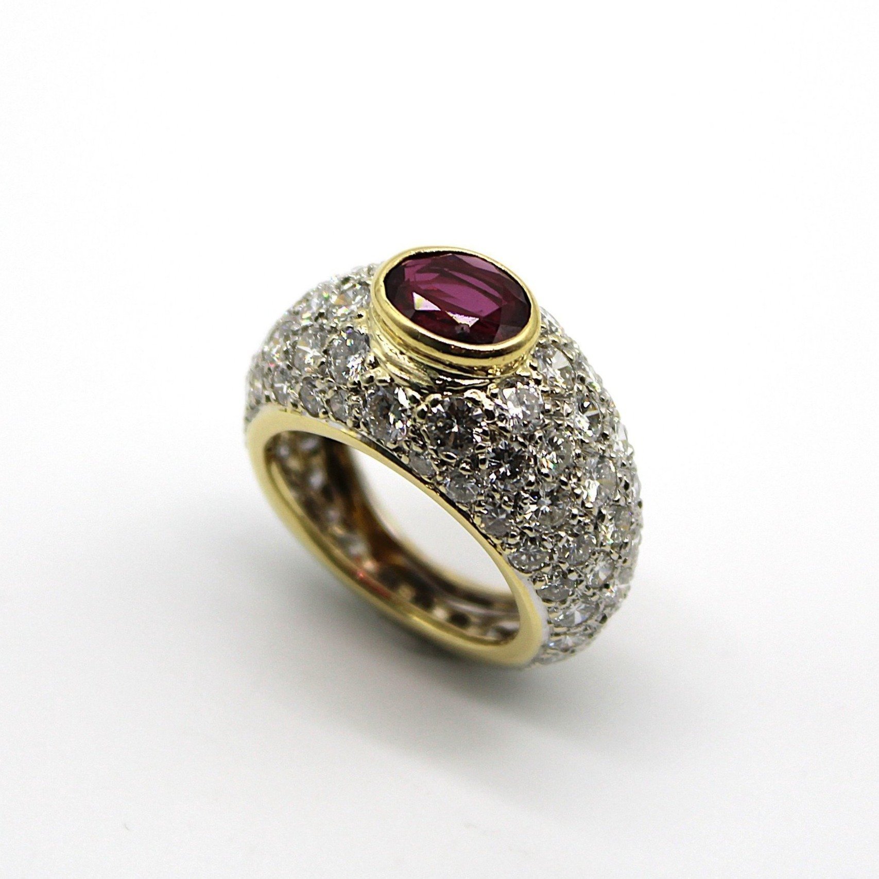 Statementring i 18K guld med äkta rubin och diamanter (4,97ctv, stl 16,25mm)