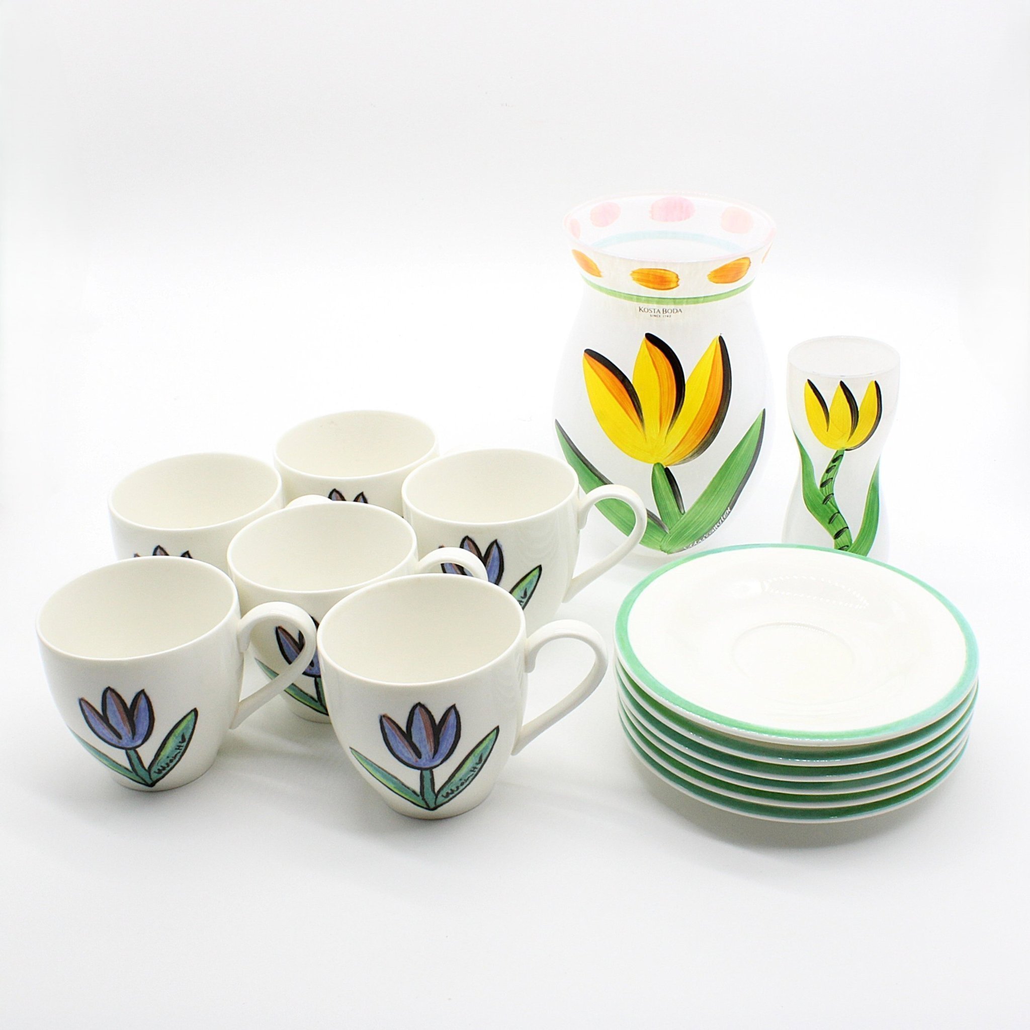 Servisdelar från Kosta Boda i vit, av Ulrica Hydman-Vallien, tulpan-/blommotiv