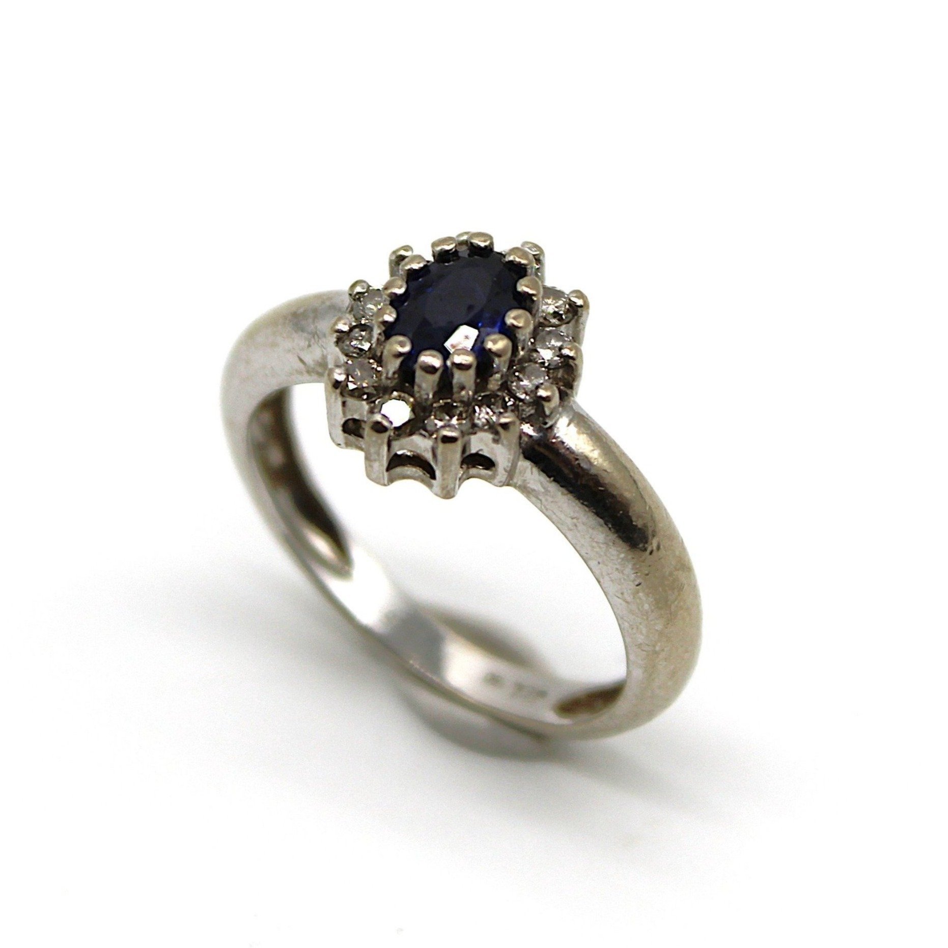 Vacker haloring i 18K vitguld med äkta safir och diamanter (0,9ctv, stl 16,65mm)
